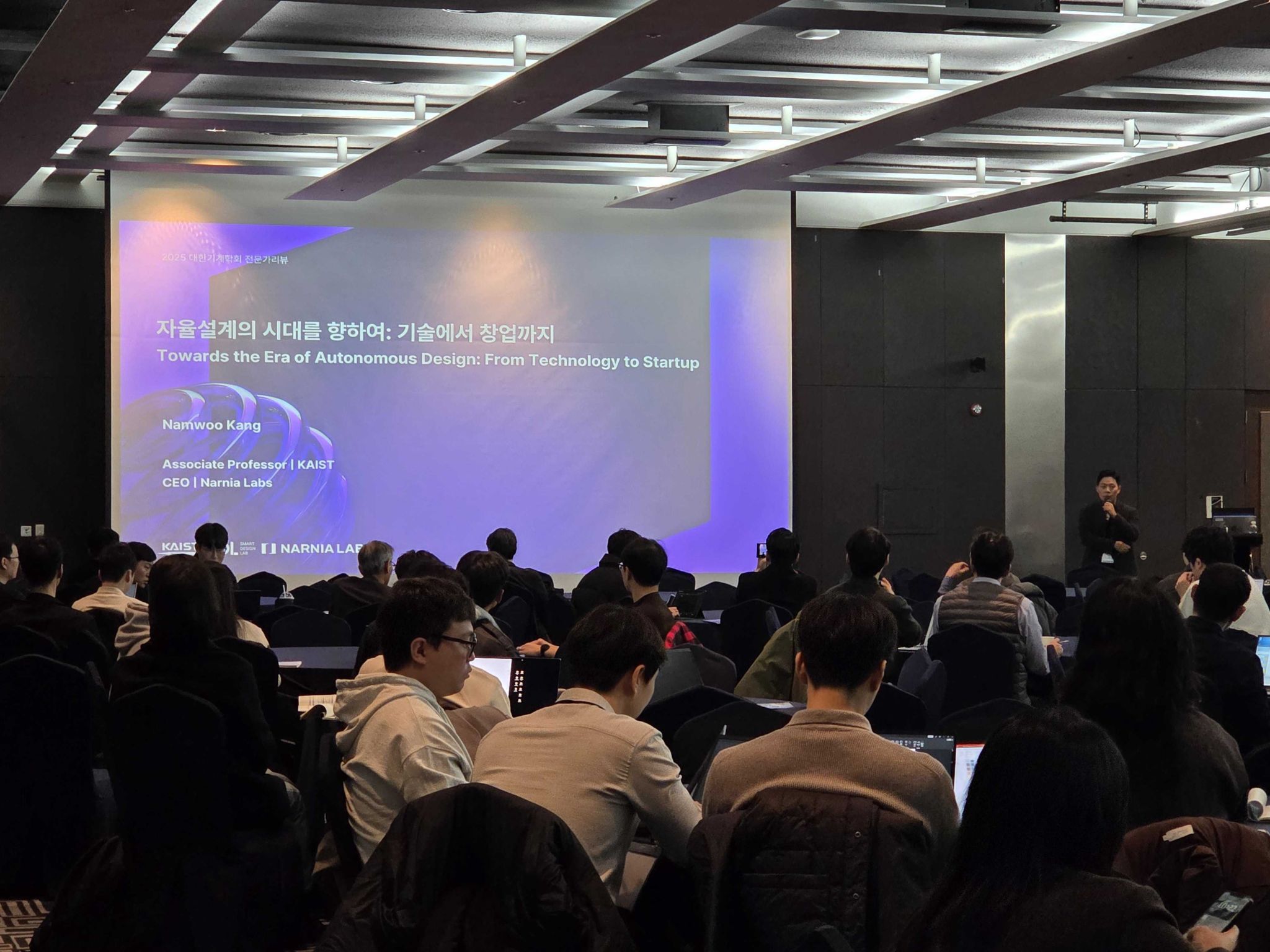 지난달 다녀온 대한기계학회(KSME) 소식도 전해드려요. 이번 학회에서는 '자율설계의 시대를 향하여 : 기술에서 창업까지'라는 주제로 발표 무대에 섰습니다. 나니아랩스가 바라보는 자율설계의 미래와 창업 스토리를 많은 분들과 나누며 소통할 수 있어 즐겁고 의미 있는 시간이었습니다.